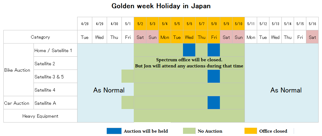 Thank you for taking the time to visit our website. It is our desire to open up a vast amount of opportunities to you in a simple risk free way. We have found through over 18 years in this industry, good advice is worth a thousand pictures or words. Whether buying New, Used, or Damaged Motorcycles, Cars, Airplanes and other items we sell, it is the desire to see you happy with the best possible buy that gives Spectrum the edge. Spectrum doesn't just sell; we work as a team with you to find you the best oportunities. Each area has skilled English speakers to help you buy what you need.
